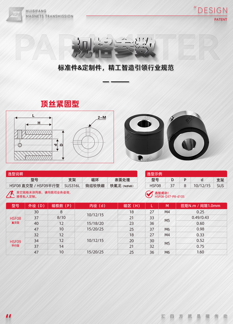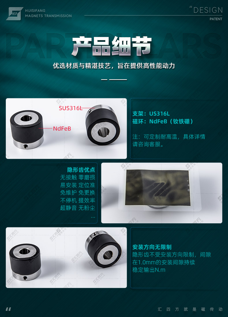 磁力輪(Magnet Gear)是利用釹鐵硼強鐵的吸力和斥力的相互作用原理,實現(xiàn)無接觸的動力傳遞裝置。鐵氟龍耐酸堿氣體腐蝕。