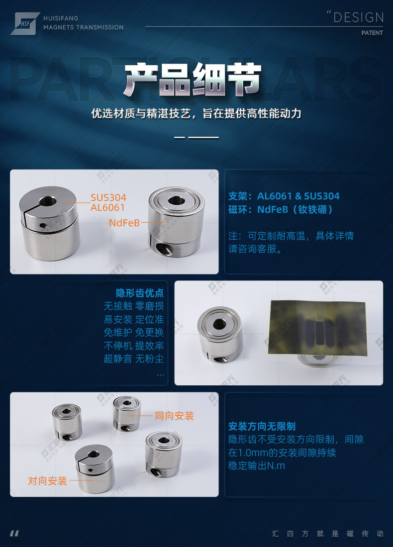 磁力輪(Magnet Gear)又稱為磁性齒輪。涵蓋了直交磁力輪、平行磁性磁力輪。是利用磁鐵的吸力和斥力的相互作用原理,非接觸式動力傳遞裝置。磁力輪適合在潔凈的環境下,不允許細微雜質的LCD、PDP、PCB、TFT、OLED、SOLAR CELL等生產線上以非接觸狀態的傳動裝置,可替代依靠接觸式的齒輪驅動。從根本上杜絕在使用接觸式齒輪傳動時產生的粉塵等問題。在光電設備、半導體設備、3D玻璃設備、液晶模組設備、物流倉儲設備、PCB線路板設備等領域有著廣泛的應用。